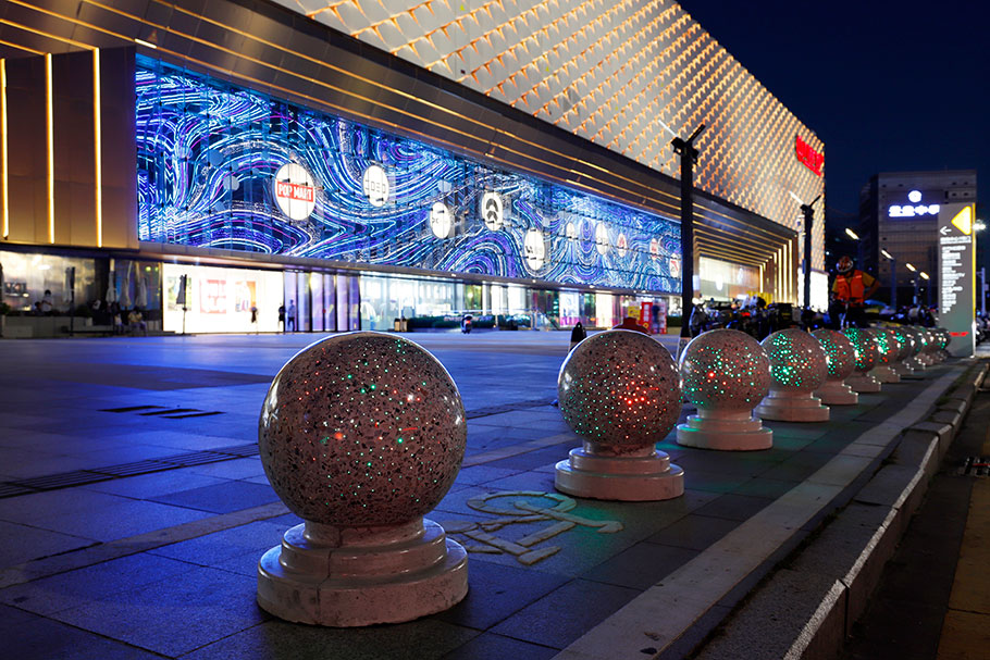 新型路障石材具有擋車(chē)功能,提升場(chǎng)所的形象和安全性,夜晚展現(xiàn)出特別絢麗的效果