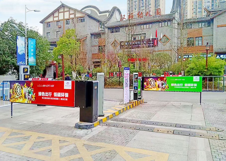 D203卡布燈箱廣告道閘+P815SP車牌識(shí)別——四川宜賓南溪文體中心停車場(chǎng)4進(jìn)4出案例