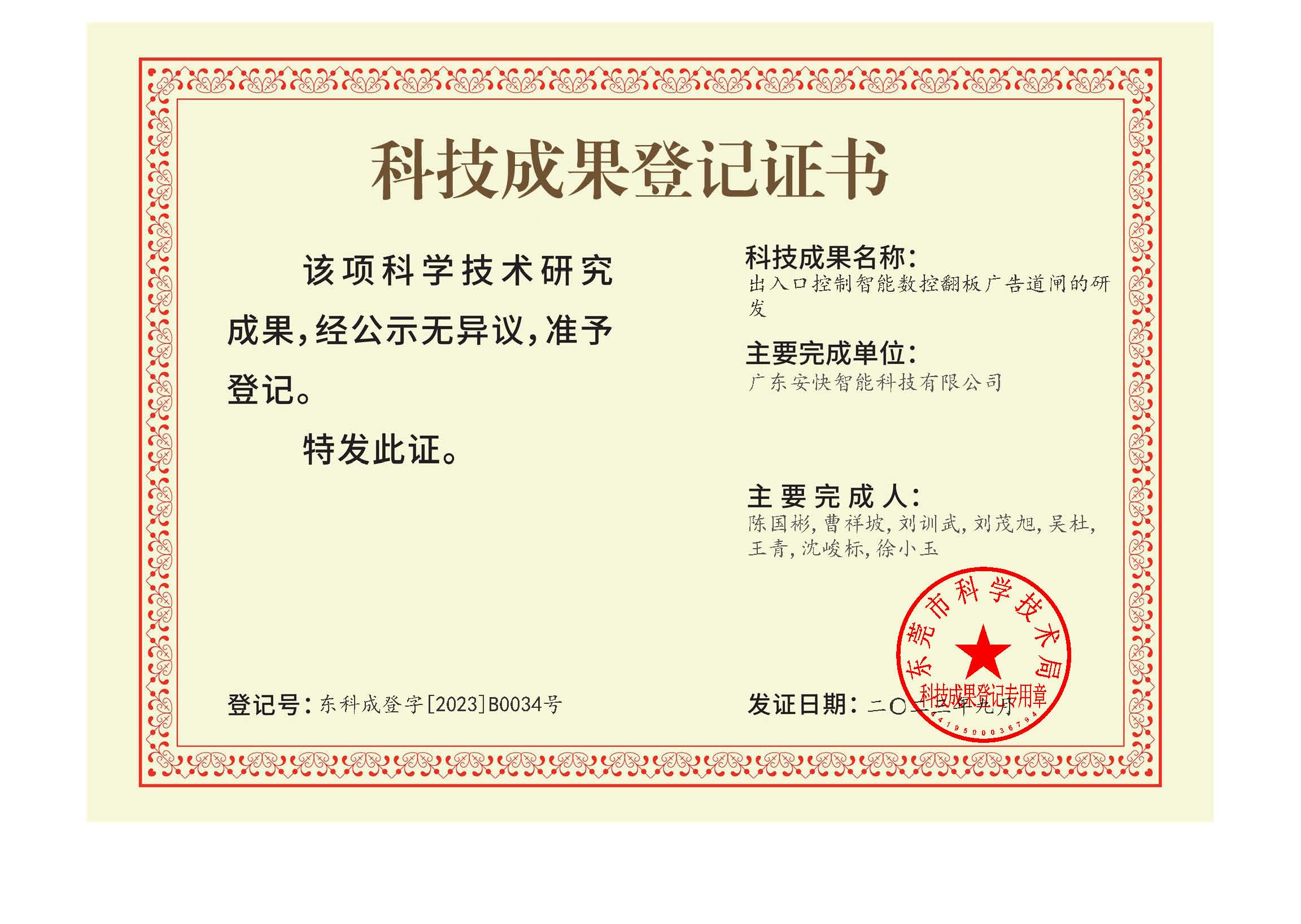科技成果登記證書