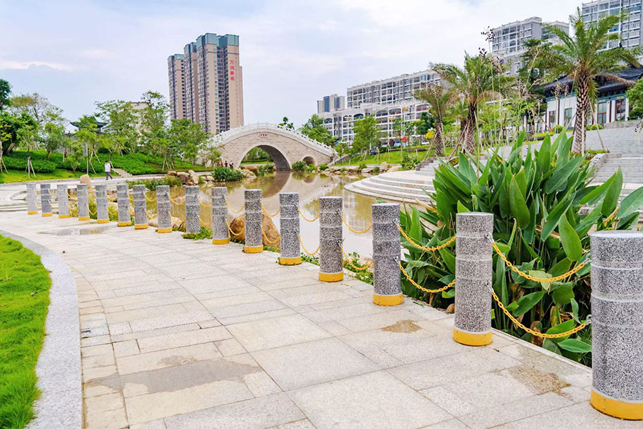 廣西北流鄉(xiāng)賢公園-河道發(fā)光路障石柱案例